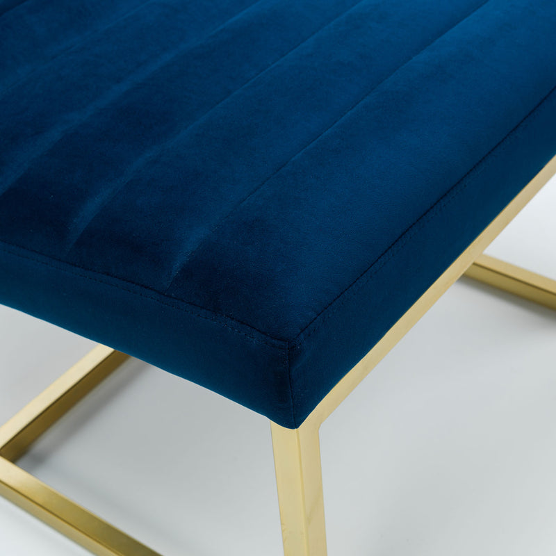 Bellagio chair is upholstered in an eye-catching blue velvet fabric, upon a luxurious, modern gold frame.