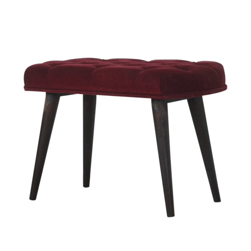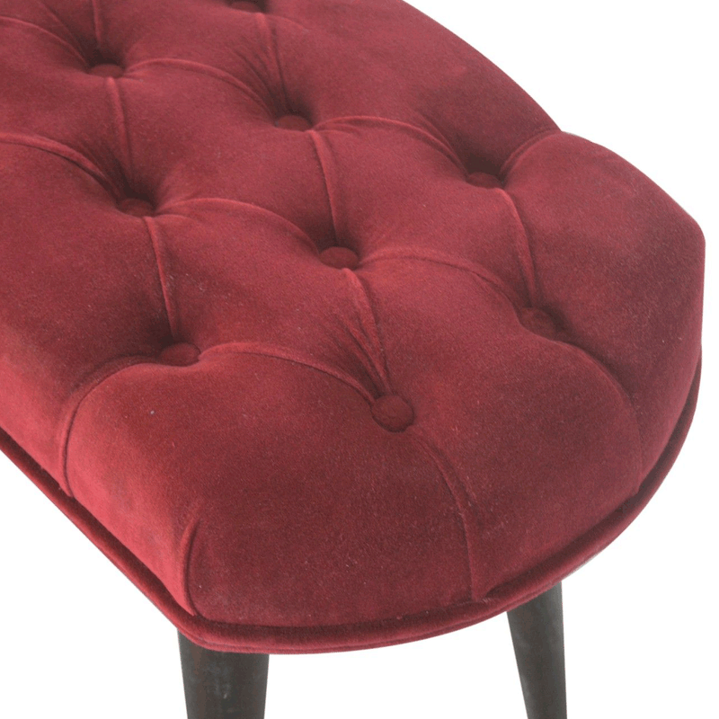 This beautiful technique upholstered wine red velvet nordic style bench has been made with cotton velvet fabric and features a classy deep-button design on the top.